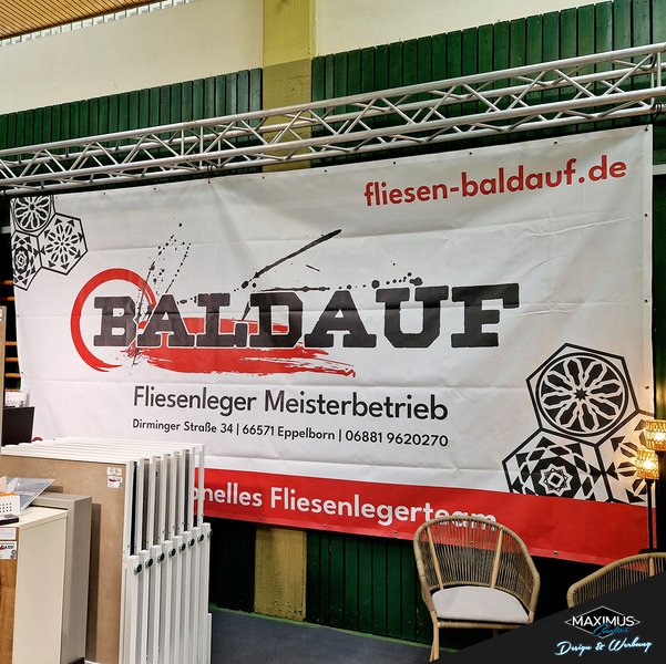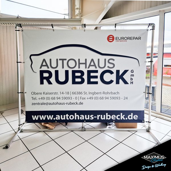 Auch als Textilbanner Blockout erhältlich, lichtundurchlässig durch schwarzfarbigen Hintergrund.